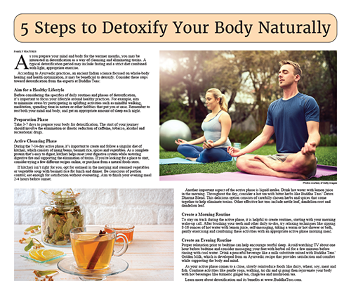 Write a tips-and-takeaways article providing readers with steps to naturally detoxify the body while highlighting the products and their benefits. Design a half-page formatted layout with an eye-catching headline treatment and images to attract editors and readers alike. Promote the content via Family Features’ eLivingtoday.com social media profiles for additional engagements and impressions.