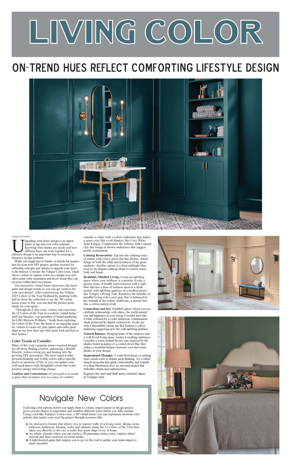 Frame a full-page formatted Feature around trending colors in home design, including high-resolution images, while promoting the online tool as a useful resource for visualizing a completed project. Distribute the content to a nationwide network of publications to generate earned and paid placements. Further promote the content via social media and cost-per-click campaigns designed to reach consumers directly.