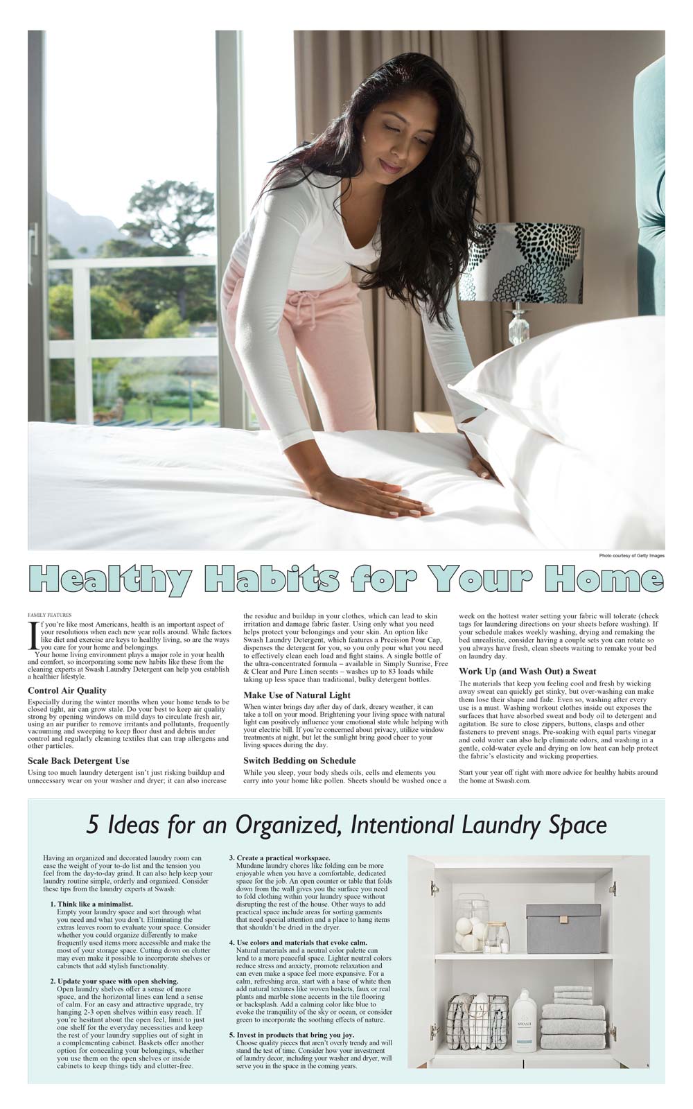 Produce a formatted full-page Feature sharing healthy home habits paired with tips to create an organized laundry space. Distribute and promote the content to a nationwide network of print and digital publications then amplify engagements and impressions using social media and cost-per-click campaigns.